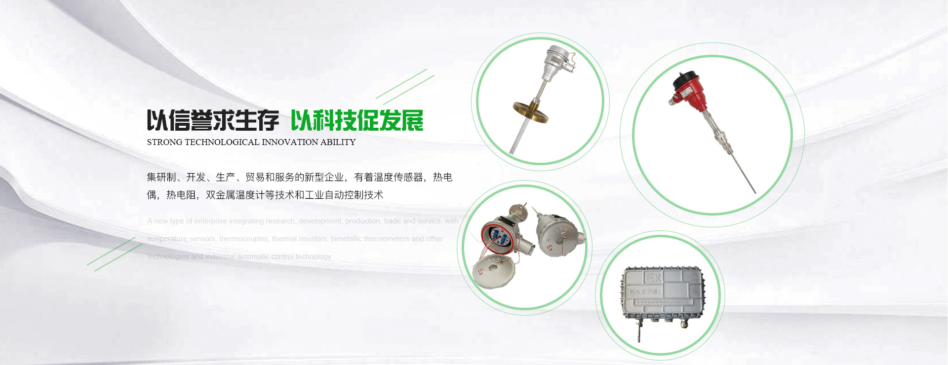 集研制、開發、生產、貿易和服務的新型企業,有著溫度傳感器,熱電偶,熱電阻,雙金屬溫度計等技術和工業自動控制技術。
