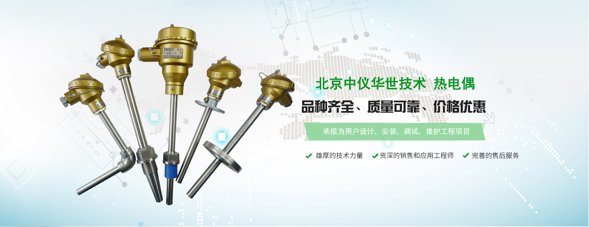 北京中儀華世技術有限公司,成立于2005年,于2014在:上海股權交易中心掛牌 代碼:201059,生產基地位于北京儀器儀表園區,是集研制、開發、生產、貿易和服務的新型企業,有著溫度傳感器,鎧裝熱電偶,防爆熱電偶,熱電阻,雙金屬溫度計等技術和工業自動控制技術;是傳感器及自動化控制、智能儀器儀表制造商,中儀華世經過35年的發展,已經形成完整的服務體系和客戶,產品內銷+出口,質保期3到10年。